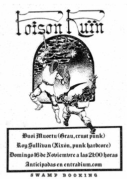 Poison Ruin es una banda de Filadelfia que fusiona anarco punk/crust con influencias del oi!, post punk, NWOBHM y dungeon synth. Con una estética medieval oscura y un enfoque político, su sonido combina energía cruda y melodías sombrías. Desde 2020, han construido un universo sonoro áspero y cautivador, ideal tanto para el pogo como para la introspección.